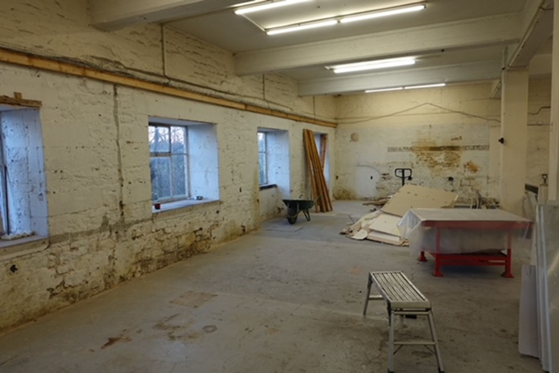 Die RenovierungDie Mühle wurde nun in ein modernes Produktdesignstudio und ein von Pepsi Co. anerkanntes Labor umgewandelt. Das Erdgeschoss wurde entkernt und wieder aufgebaut, um sicherzustellen, dass ein effektives Studio für unser Team entsteht. Wir haben die Geschichte des Gebäudes wirklich berücksichtigt und in den Entwurf einbezogen. Durch die Verwendung der einzigartigen Steinstruktur und der wunderschönen Landschaft/Flussumgebung ist das perfekte Studio entstanden.